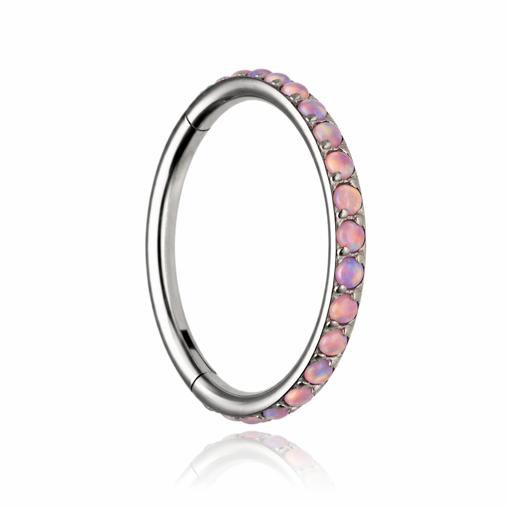 Zlaté titanové náušnice s podkovou a světle fialovým opálem - TKP-004