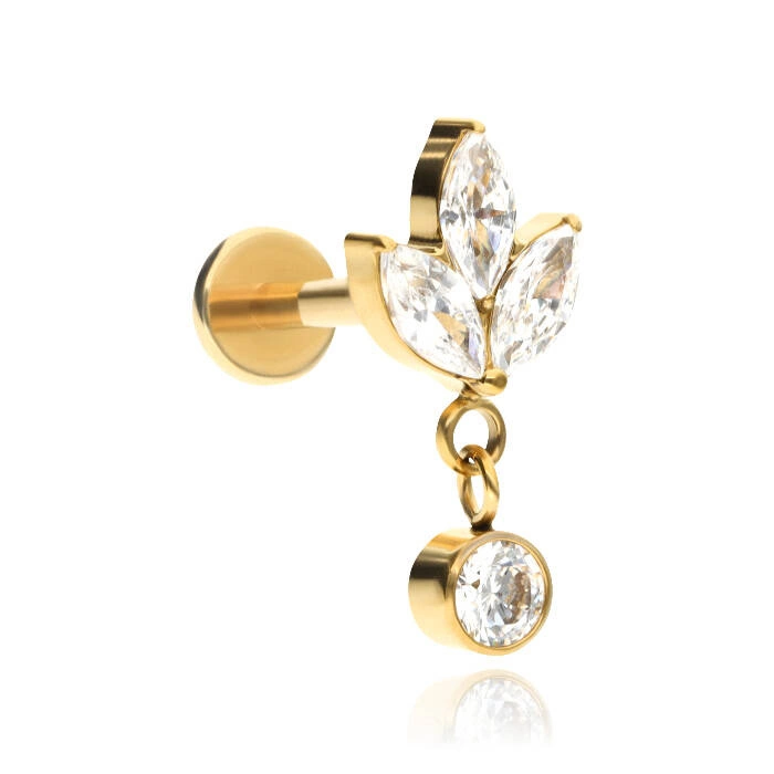 Titanová labreta listy s bílými zirkony - zlaté