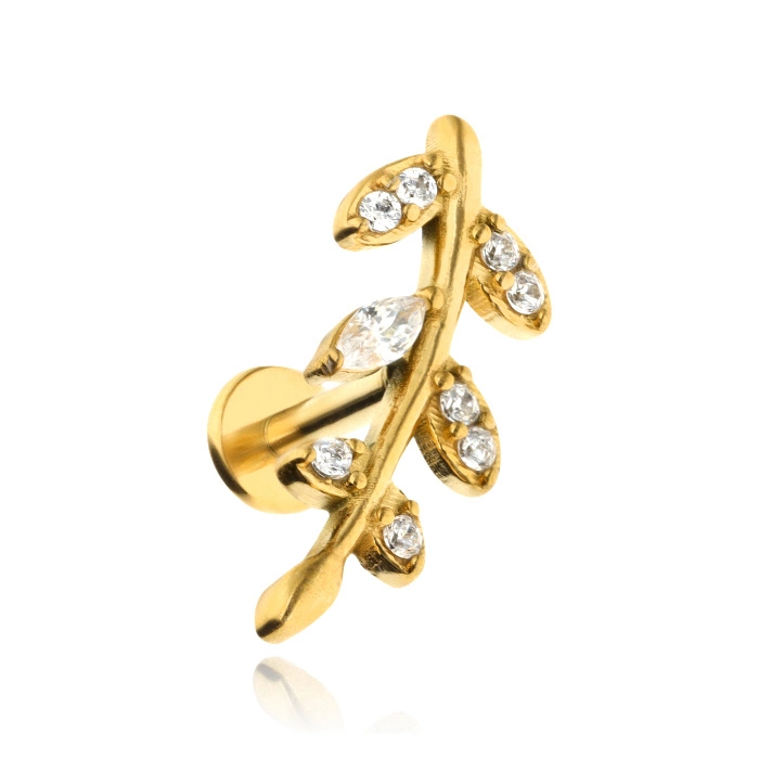 Titanová labreta zlato s bílými zirkony a řetízkem - push in - TPI-007