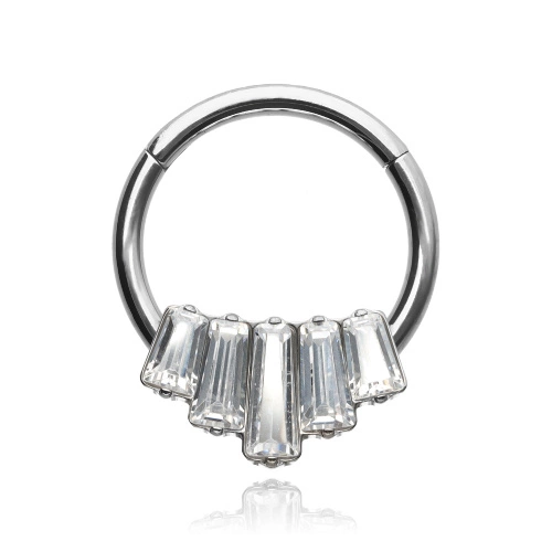 Titanový kroužek clicker se zirkony - stříbrná - TK-012