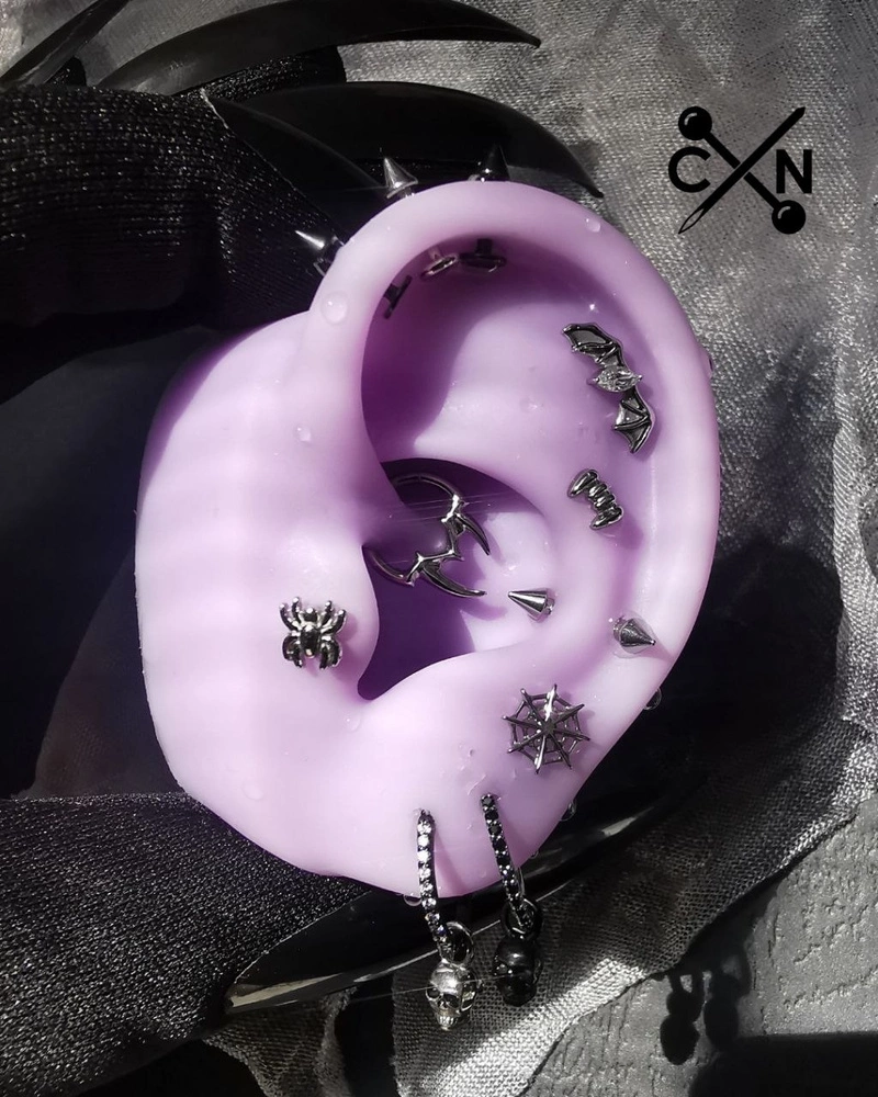CHRISTINA L květina s bílými zirkony v titanové náušnici - TI-002